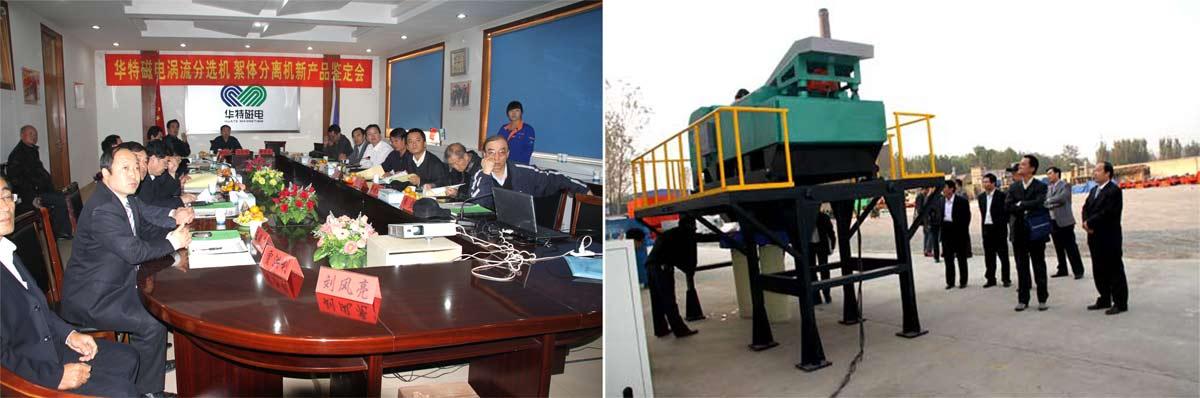 鑒定委員會在聽取匯報、審查資料、現(xiàn)場考察測試和質(zhì)詢后,一致認該倆產(chǎn)品分別達到國內(nèi)領(lǐng)先水平和國際先進水平。濰坊市科技局副局長張宏巖、濰坊市經(jīng)信委副主任李玉軍分別講話,對鑒定會的成功召開表示衷心的祝賀,對專家教授們的辛勤勞動表示深深的感謝!同時勉勵企業(yè)要再接再厲,繼續(xù)抓好技術(shù)創(chuàng)新工作,把企業(yè)做強做大。公司董事長兼總經(jīng)理王兆連致答謝詞。他感謝專家們對強磁場渦流分選機、稀土永磁絮體分離機所作的客觀公正的評價。他說本次產(chǎn)品鑒定會的圓滿成功,既是對我們?nèi)A特公司技術(shù)創(chuàng)新工作的巨大鼓勵,也是對華特公司技術(shù)創(chuàng)新工作的一次鞭策。我們將不辜負專家、領(lǐng)導(dǎo)的信任,認真按照專家提出的建議,盡快形成系列化并擴大生產(chǎn)能力,加大推廣力度,積極拓寬市場應(yīng)用面,使產(chǎn)品早日發(fā)揮社會效益。同時,也以本次鑒定會為契機,奮發(fā)努力,強化管理,進一步增強企業(yè)技術(shù)創(chuàng)新能力,把磁電事業(yè)做強做大,為引領(lǐng)行業(yè)技術(shù)進步,促進社會經(jīng)濟發(fā)展,特別是在節(jié)能環(huán)保資源綜合利用等新興產(chǎn)業(yè)方面,為社會作出更大的貢獻。