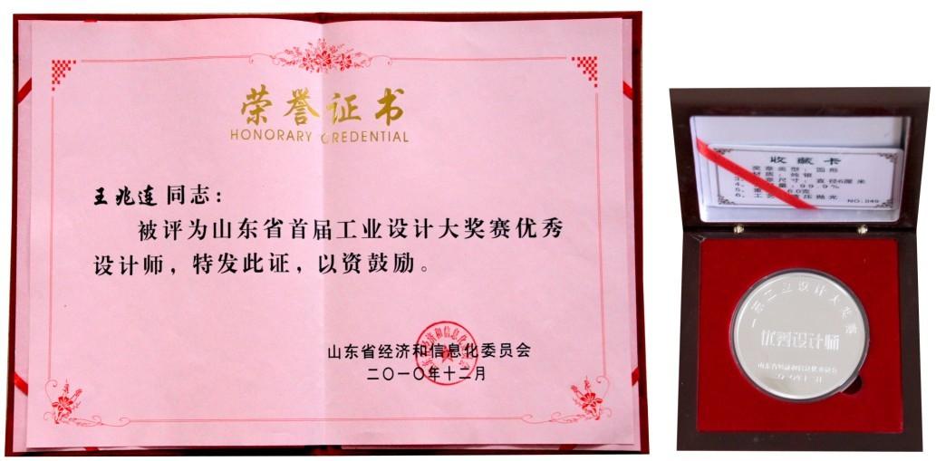 2010年12月29日,由省經(jīng)信委舉辦的“山東省首屆工業(yè)設(shè)計(jì)大賽”結(jié)果揭曉(魯經(jīng)信技字[2010]644號(hào)),公司申報(bào)的“超強(qiáng)永磁旋流攪拌器”榮獲“山東工業(yè)設(shè)計(jì)大獎(jiǎng)賽銀獎(jiǎng)”。公司董事長(zhǎng)兼總經(jīng)理王兆連同時(shí)被授予“山東工業(yè)設(shè)計(jì)大獎(jiǎng)賽優(yōu)秀設(shè)計(jì)師”稱號(hào),并被授予銀牌1枚。