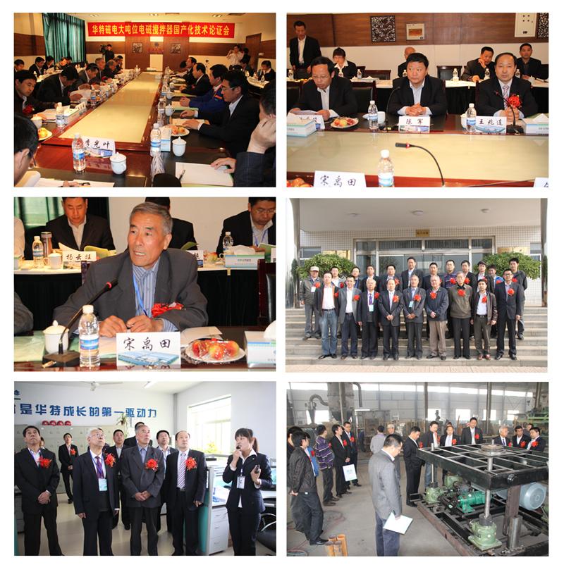 大噸位電磁攪拌器是我公司根據(jù)2009年山東省第一批技術(shù)創(chuàng)新項(xiàng)目計(jì)劃研制開發(fā)的新產(chǎn)品。為幫助企業(yè)進(jìn)一步完善產(chǎn)品質(zhì)量,為用戶提供高性價比的產(chǎn)品,2011年4月23日臨朐縣經(jīng)信局在臨朐組織召開了產(chǎn)品國產(chǎn)化技術(shù)論證會,來自中國有色金屬加工協(xié)會、中國資源綜合利用協(xié)會、中科院電工研究所、中科院高能物理研究所、山東大學(xué)、濟(jì)寧學(xué)院、蘇州博能爐窯科技有限公司、中鋁山東分公司電解鋁廠、中色科技股份有限公司、河南中孚實(shí)業(yè)有限公司等十多單位的20多位專家和客戶代表參加了會議。與會專家考察了生產(chǎn)現(xiàn)場,聽取了研制單位的技術(shù)匯報,審查了有關(guān)資料,經(jīng)過質(zhì)詢討論,形成如下論證意見: