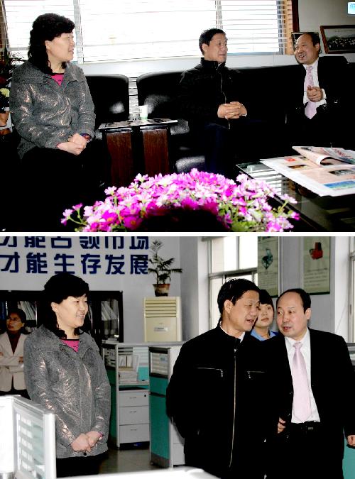 3月22日上午,濰坊市政協副主席杜國忠,在臨朐縣政協主席趙永娟等領導陪同下來公司參觀指導。公司董事長兼總經理王兆連匯報工作,并陪同參觀了公司企業技術中心、專家辦公室、展廳,并到公司新園區進行視察。