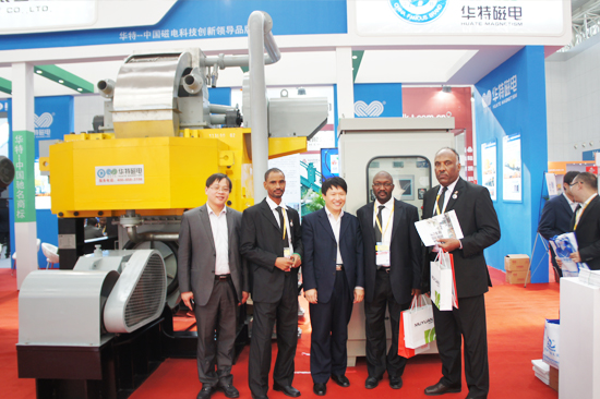 進(jìn)入N1展館,一眼便能望到藍(lán)白相間的華特磁電展區(qū),此次,華特攜1.5m立環(huán)高梯度磁選機(jī)(磁場達(dá)18000Gs)和1.8m大筒徑高效濕式預(yù)選機(jī)參展,憑借油冷卻技術(shù)及產(chǎn)品低能耗、低溫升、高場強(qiáng)、高壽命等顯著優(yōu)勢,先后吸引了300多家客戶,其中近期有合作項(xiàng)目的五十余個。