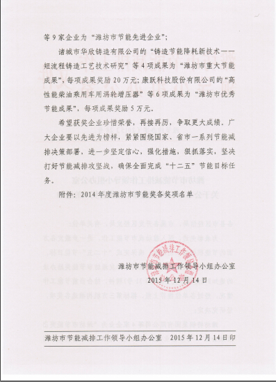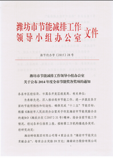 近日濰節(jié)約辦字[2015]28號文件和濰財企字[2015]28號文件下達(dá)了2015年度濰坊市節(jié)能獎的相關(guān)通知,我公司自主研發(fā)的發(fā)明專利產(chǎn)品提精降渣磁選機(jī)獲節(jié)能獎優(yōu)秀節(jié)能成果,獎勵資金5萬元。此次獲評是對提精降渣磁選機(jī)的充分肯定,該產(chǎn)品與電磁淘洗機(jī)串聯(lián)使用成功代替了反浮選工藝,省去了藥物除硅環(huán)節(jié),節(jié)能環(huán)保效益顯著。該產(chǎn)品項(xiàng)目2014年列入山東省科技發(fā)展計劃,2015年5月通過了新產(chǎn)品鑒定,技術(shù)達(dá)到國際領(lǐng)先水平,目前該產(chǎn)品已實(shí)現(xiàn)大批量產(chǎn)業(yè)化生產(chǎn),年產(chǎn)200臺套提精降渣磁選機(jī)生產(chǎn)線項(xiàng)目已列入濰坊市重大謀劃項(xiàng)目。