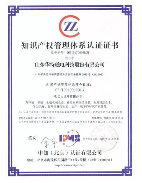 2017年3月6日,華特公司順利通過中知(北京)認(rèn)證有限公司知識(shí)產(chǎn)權(quán)管理體系認(rèn)證審核,并獲得知識(shí)產(chǎn)權(quán)管理體系認(rèn)證證書,這標(biāo)志著華特公司在知識(shí)產(chǎn)權(quán)管理方面邁入一個(gè)新臺(tái)階。