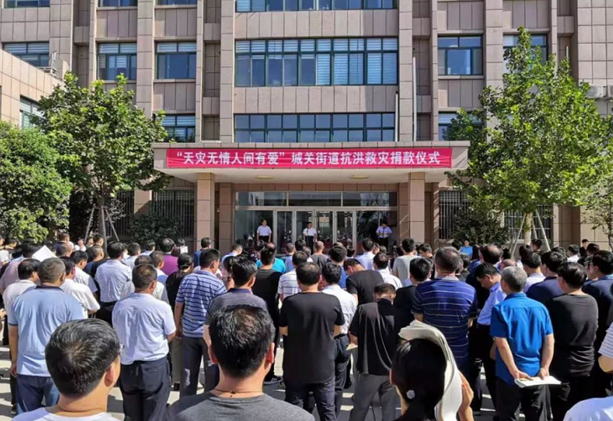 8月17日上午,城關街道黨工委率先組織舉辦“天災無情 人間有愛”抗洪救災捐款活動,活動號召街道上下繼續發揚抗洪精神,堅定信心,克難奮進,全力奪取恢復重建工作的全面勝利。華特公司董事長兼總裁王兆連代表公司出席活動并捐款10萬元。