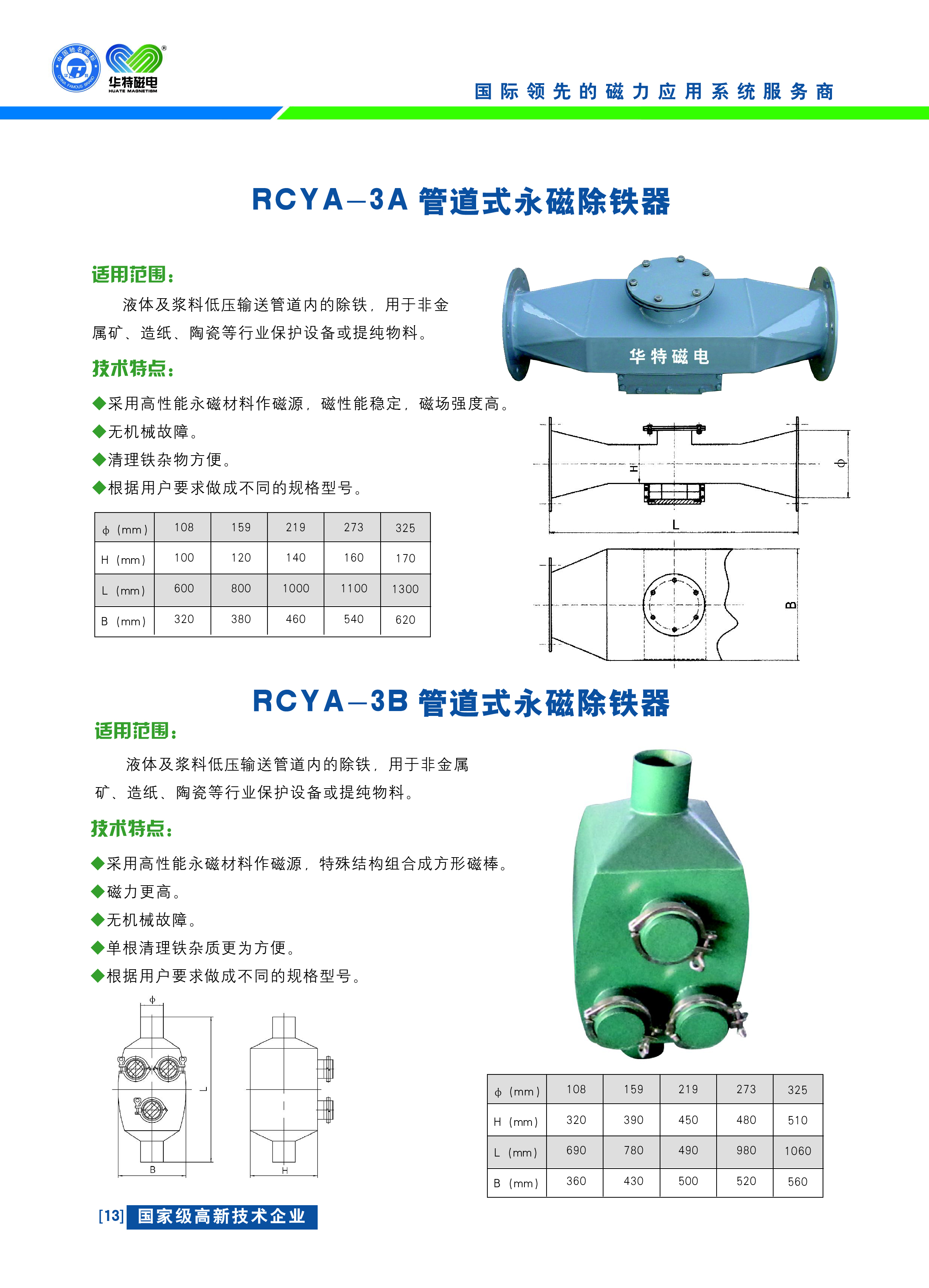 液體及漿料低壓輸送管道內的除鐵,用于非金屬礦、造紙、陶瓷等行業保護設備或提純物料。