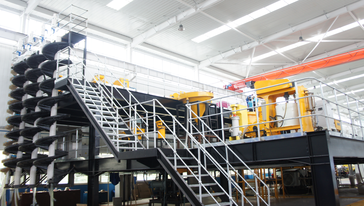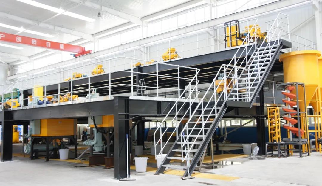 在大型的鋼結(jié)構(gòu)平臺(tái)上設(shè)有多功能實(shí)驗(yàn)生產(chǎn)線系統(tǒng),在這里可以模擬濕法選礦廠工業(yè)生產(chǎn)線的運(yùn)行狀態(tài),可對各種礦物進(jìn)行磨礦—分級—選礦—脫水等全流程半工業(yè)化選礦實(shí)驗(yàn),通過對不同試驗(yàn)機(jī)的搭配組合,可滿足各種礦物所需要的選別工藝流程。通過這個(gè)全流程系統(tǒng)化的實(shí)驗(yàn),更加確保實(shí)驗(yàn)數(shù)據(jù)的可靠性和穩(wěn)定性。